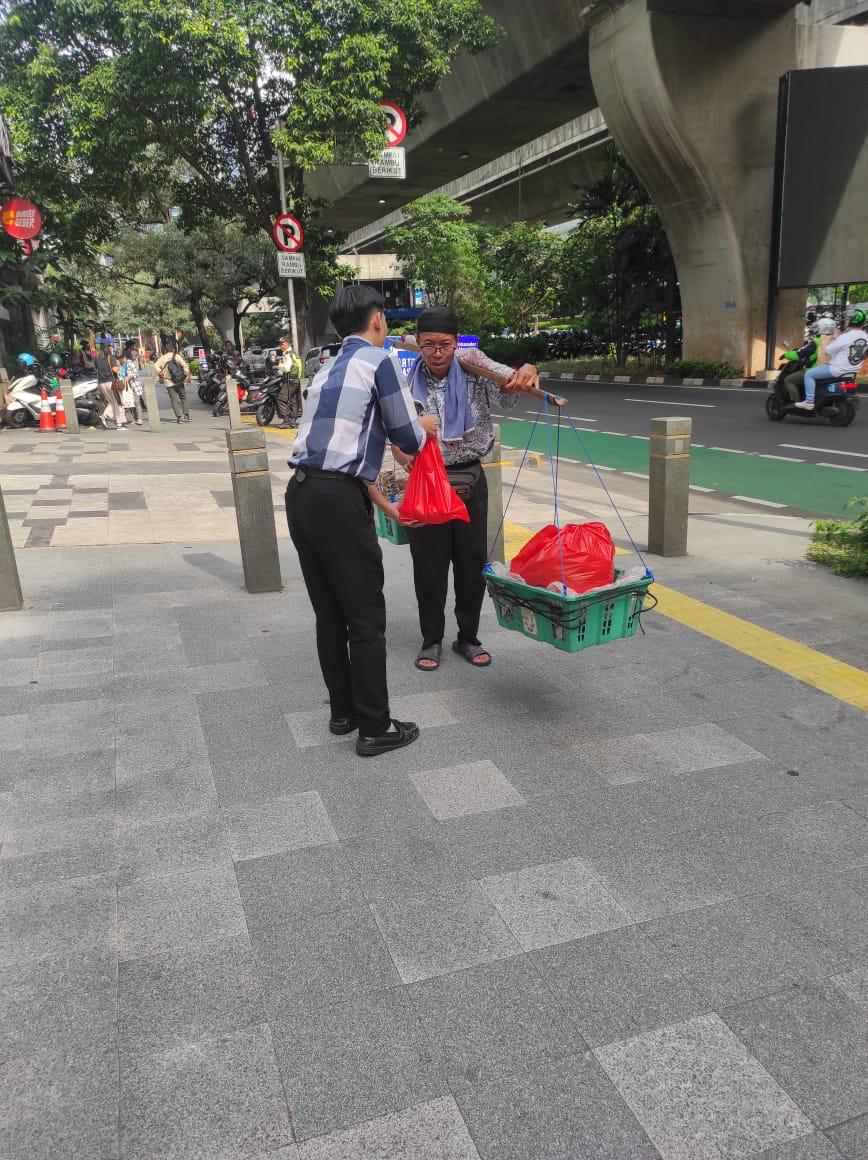 Dalam kegiatan tersebut, pihak BRI membagikan sekitar 100 nasi kotak kepada warga setempat, pengendara motor, ojek online, pengemis, tukang parkir, serta masyarakat yang melintas di kawasan Mall Ambassador.